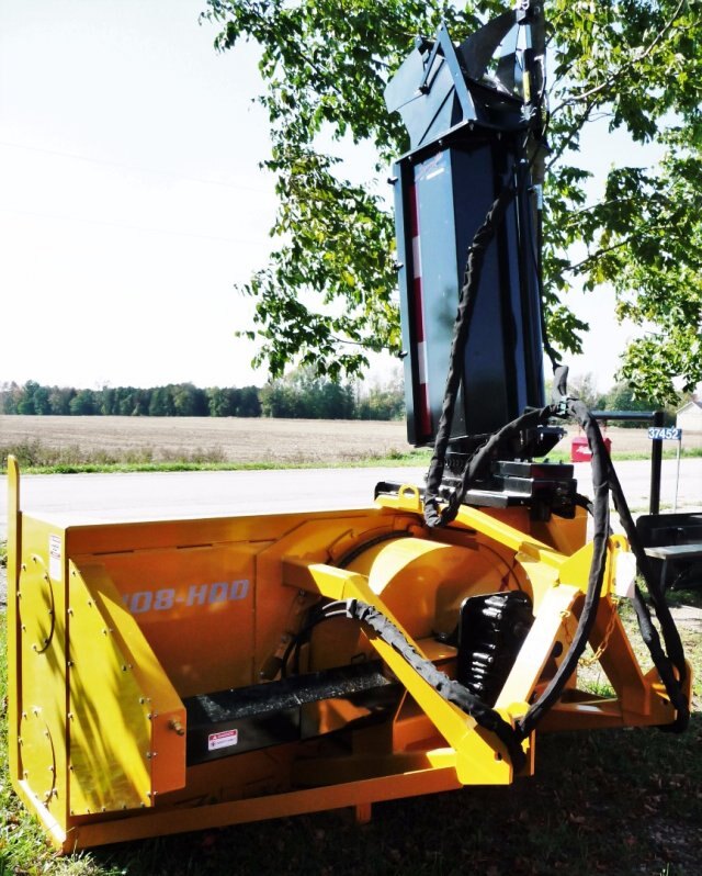 Smyth’s 108” single auger snowblowers have a 24” auger, while the double auger snowblowers have two 20” augers. These blowers have a 12” x 36” fan, and a drive-line capable for over 200 h.p. Standard features on this blower include ½” thick re-inforced fan blades, 3/16” thick fan housing and body, 7/16” thick end plates, 3/4” thick “A” frame and hitch clevis, and #80 heavy roller chain for the auger drive.